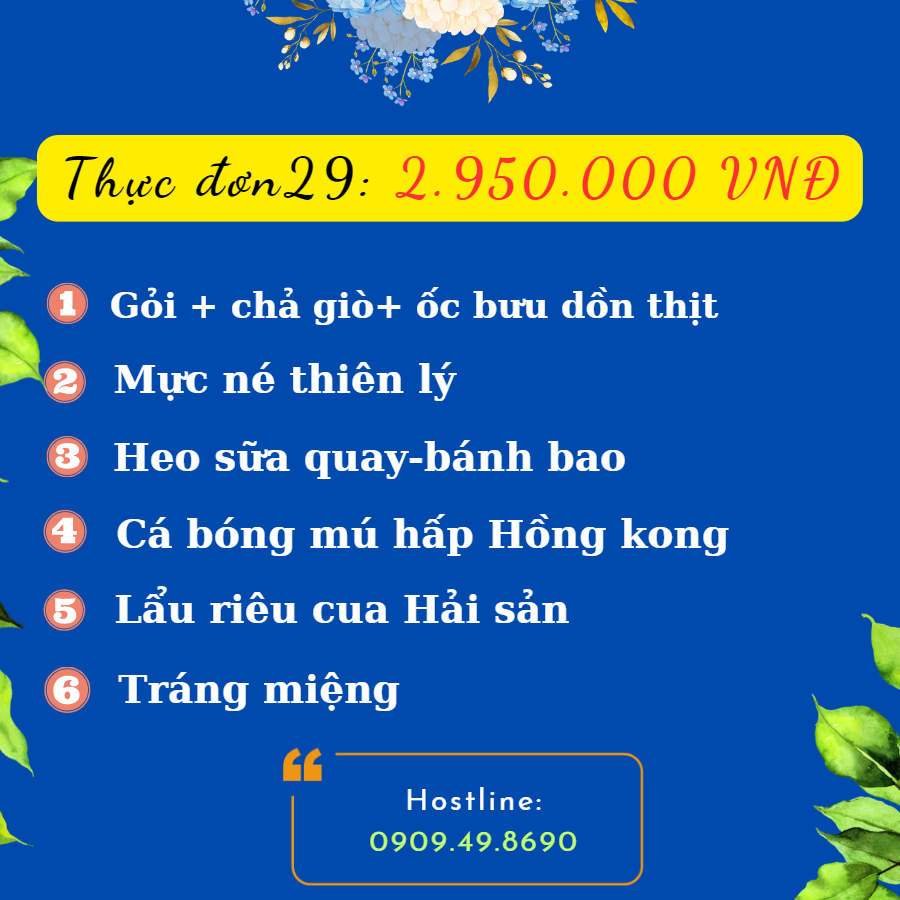 Ngoài ra, chúng tôi còn cung cấp các dịch vụ liên quan đến tiệc cưới như trang trí hoa, thực đơn tiệc cưới, cho thuê bàn ghế chén dĩa... và nhiều hơn nữa để bạn có thể tổ chức một buổi tiệc cưới hoàn hảo nhất.