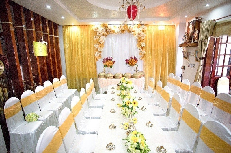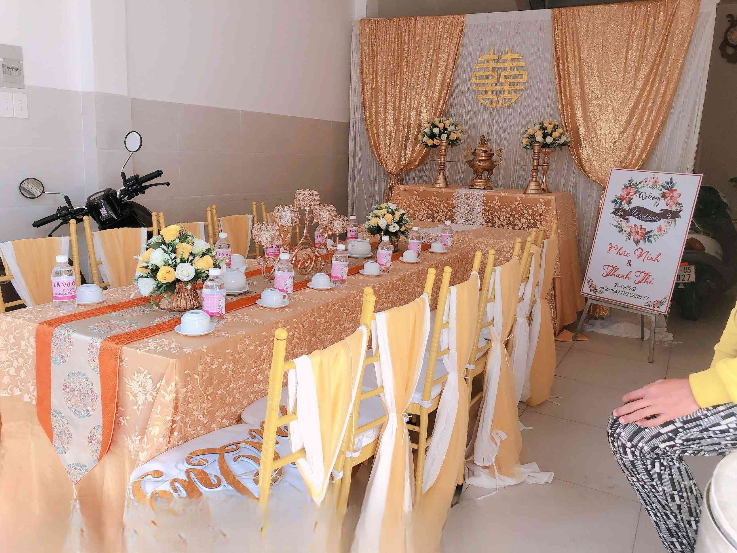 hình ảnh trang trí gia tiên ghế tiffany ở bến lức tông vàng ở Bến Lức