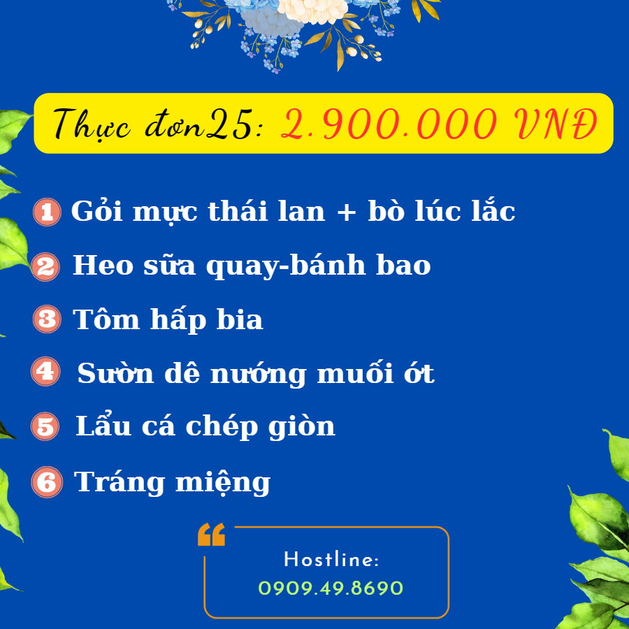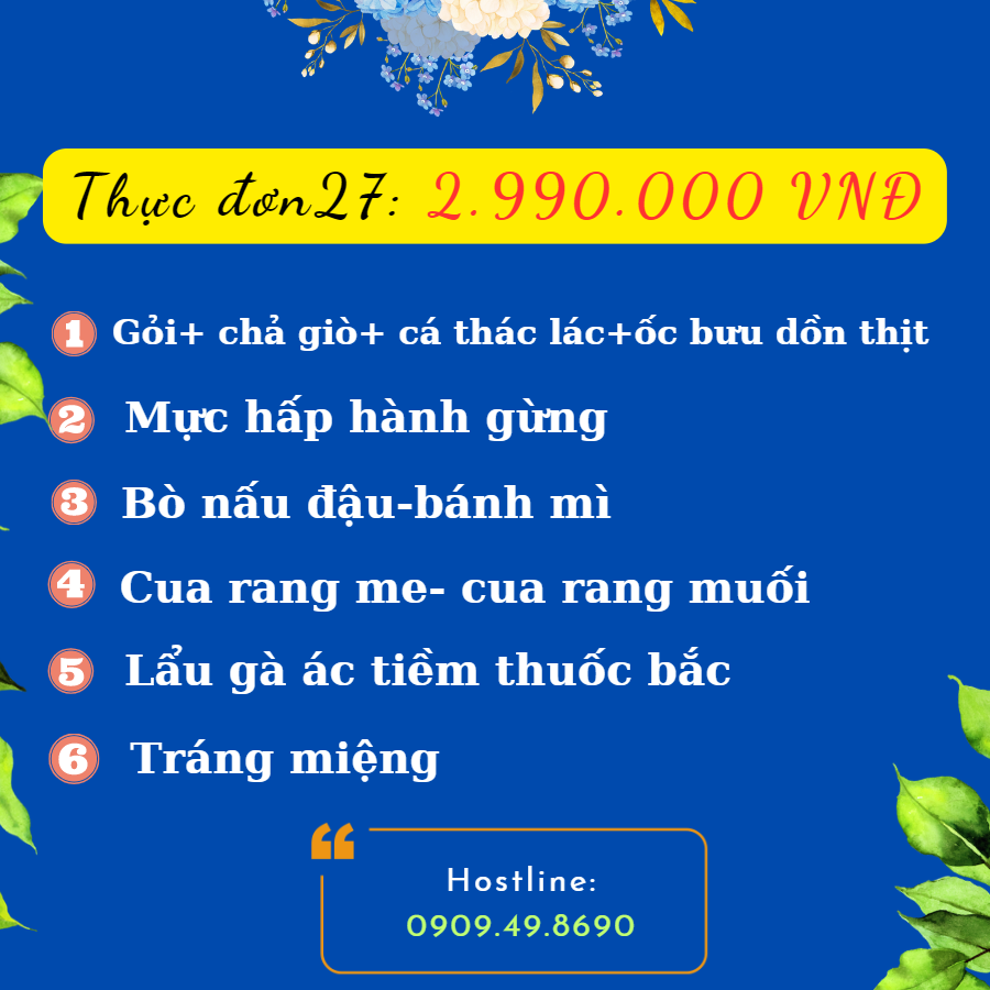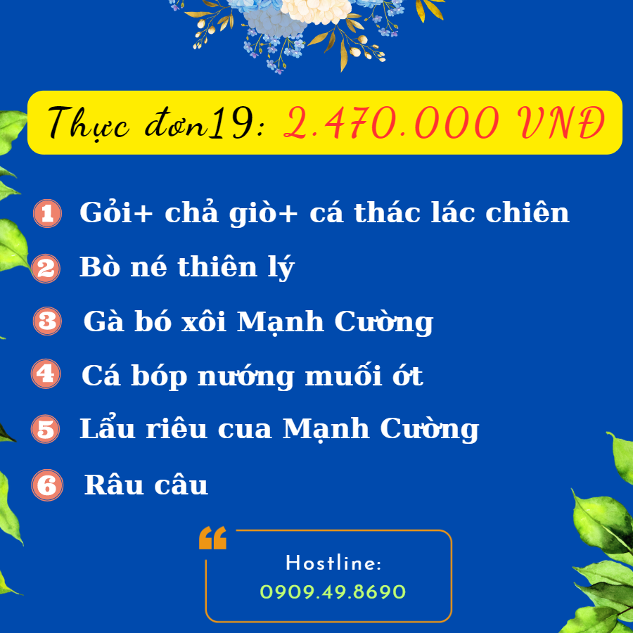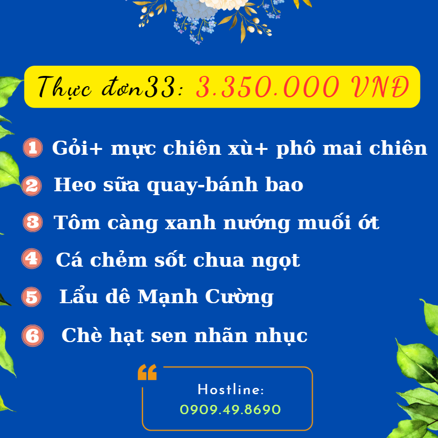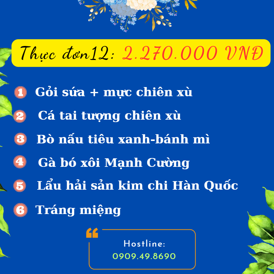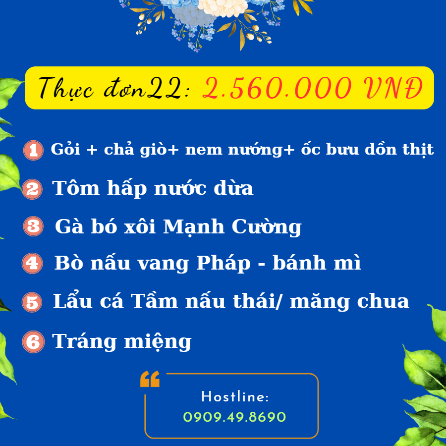 Thực đơn bên nhà Mạnh Cường do đầu bếp trên 10 năm kinh nghiệm chế biến:
